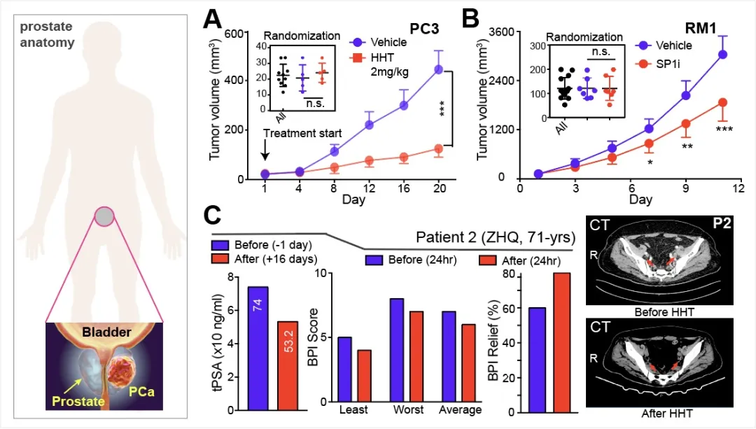 該工作從臨床樣本出發(fā),鑒定了一種新的惡性PCa亞型,并通過多種體內(nèi)外試驗(yàn)證明靶向蛋白質(zhì)合成通路和SP1可有效地抑制腫瘤進(jìn)展。尤其是作者開展了IIT臨床研究,初步證明了HTT治療惡性PCa的可行性,為后續(xù)的臨床轉(zhuǎn)化提供了直接的依據(jù)。
