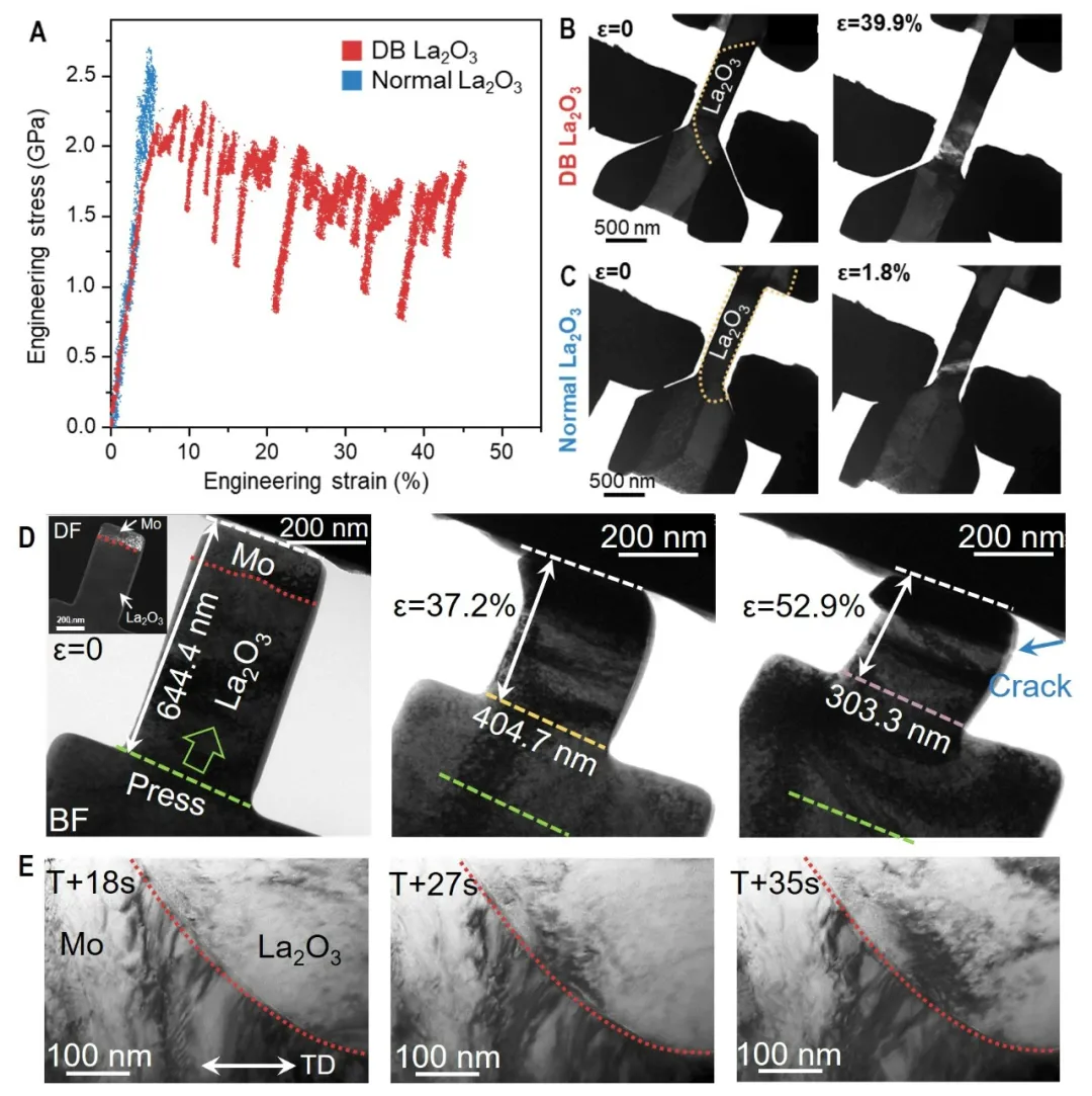 具有有序界面結(jié)構(gòu)的La2O3陶瓷可成功從金屬中“借”位錯(cuò),并成功實(shí)現(xiàn)陶瓷的拉伸和彎曲變形
