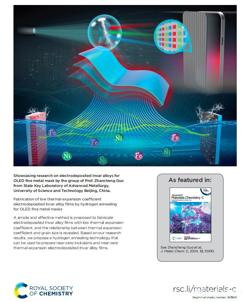 近日,北京科技大學(xué)綠色低碳鋼鐵冶金全國(guó)重點(diǎn)實(shí)驗(yàn)室郭占成教授團(tuán)隊(duì)在制備近零膨脹近零夾雜物因瓦合金箔方面取得重大突破,該研究成果為解決我國(guó)FMM“卡脖子”材料提供了關(guān)鍵技術(shù)基礎(chǔ)。國(guó)外Journal of Materials Chemistry C以封面論文形式發(fā)表了該研究成果,論文第一作者是博士研究生任為,通訊作者郭占成。