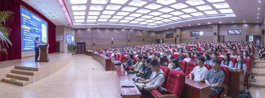 500余名國科大2024級(jí)集中教學(xué)新生在主會(huì)場聆聽報(bào)告,各院系和培養(yǎng)單位通過線上分會(huì)場集中觀看。國科大黨委常委、副校長金德鵬出席報(bào)告會(huì)。