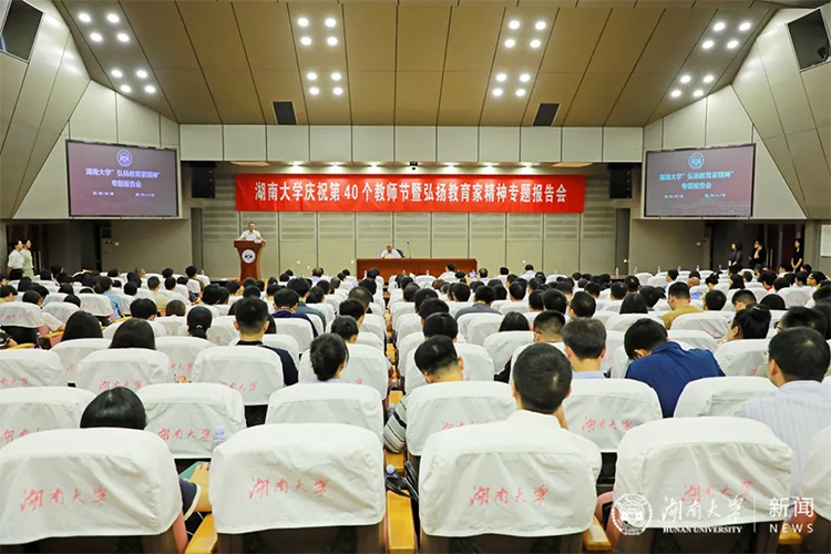 第40個(gè)教師節(jié)即將來(lái)臨,為大力弘揚(yáng)教育家精神,引導(dǎo)廣大教師從理想信念、道德情操、育人智慧、躬耕態(tài)度、仁愛之心、弘道追求等六個(gè)方面深刻理解和踐行教育家精神,9月6日上午,湖南大學(xué)舉行慶祝第40個(gè)教師節(jié)暨弘揚(yáng)教育家精神專題報(bào)告會(huì)。報(bào)告會(huì)由中國(guó)工程院院士、土木工程學(xué)院教授、2023年度國(guó)家技術(shù)發(fā)明獎(jiǎng)一等獎(jiǎng)獲得者、第二批“全國(guó)高校黃大年式教師團(tuán)隊(duì)”負(fù)責(zé)人、2024年“湖南省教書育人楷模”特別人選獲得者陳政清主講。校黨委副書記唐珍名主持報(bào)告會(huì)。