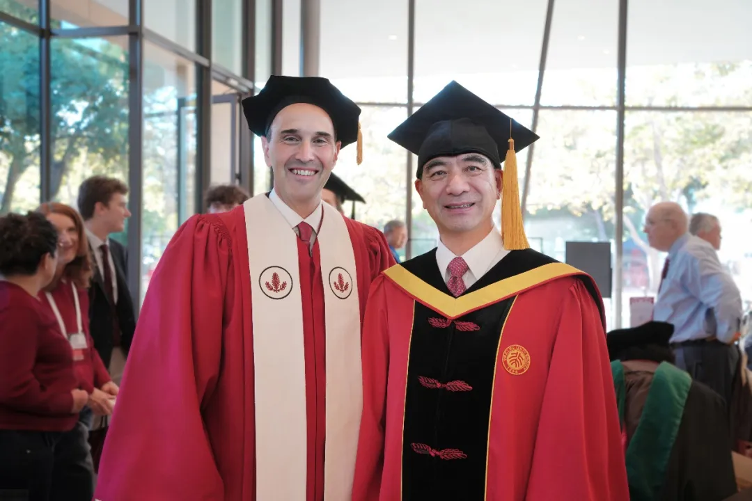 9月27日,斯坦福大學(xué)新任校長就職典禮在斯坦福大學(xué)弗羅斯特圓形劇場(chǎng)(Frost Amphitheater)舉行,來自世界各地高校、科研機(jī)構(gòu)的校長及代表、斯坦福大學(xué)師生代表等共同受邀到場(chǎng)觀禮。斯坦福大學(xué)第9任校長格哈德·卡斯帕(Gerhard Casper)、第10任校長約翰·亨尼斯(John L. Hennessy)、第11任校長馬克·特榭-勒溫(Marc Tessier-Lavigne)、第12任校長理查德·薩勒(Richard Saller)等出席儀式。龔旗煌作為合作高校校長代表,與耶魯大學(xué)前校長蘇必德(Peter Salovey)等共同出席就職典禮。代表團(tuán)成員共同參加了儀式。