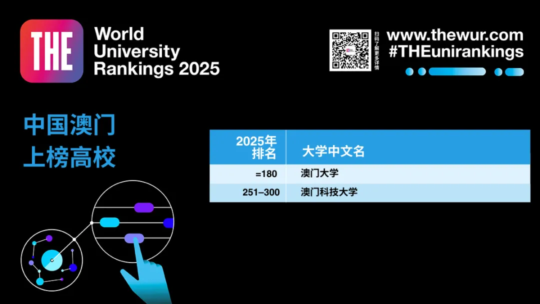 中國澳門部分,澳門大學在本次排名中表現(xiàn)亮眼,從去年的并列世界第193名上升至世界并列第180。澳門科技大學保持了其位置,排名在世界第251-300排名區(qū)間。