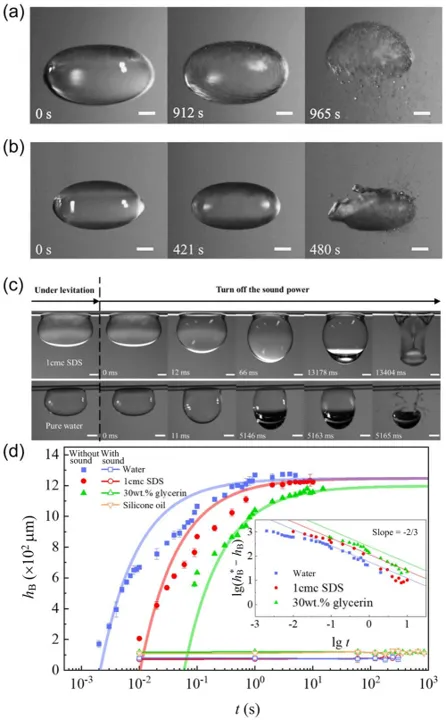 這一突出特性使課題組欣喜異常,并引起了大家極大的科研興趣?!奥晥?chǎng)中的氣泡為什么如此“堅(jiān)固”而長(zhǎng)壽?”臧渡洋教授開(kāi)始組織研究團(tuán)隊(duì)對(duì)這一問(wèn)題展開(kāi)深入探索歸納,并最終揭示了聲懸浮氣泡的超穩(wěn)定性是由于氣泡內(nèi)外表面的聲輻射力顯著抑制了重力排液導(dǎo)致的。