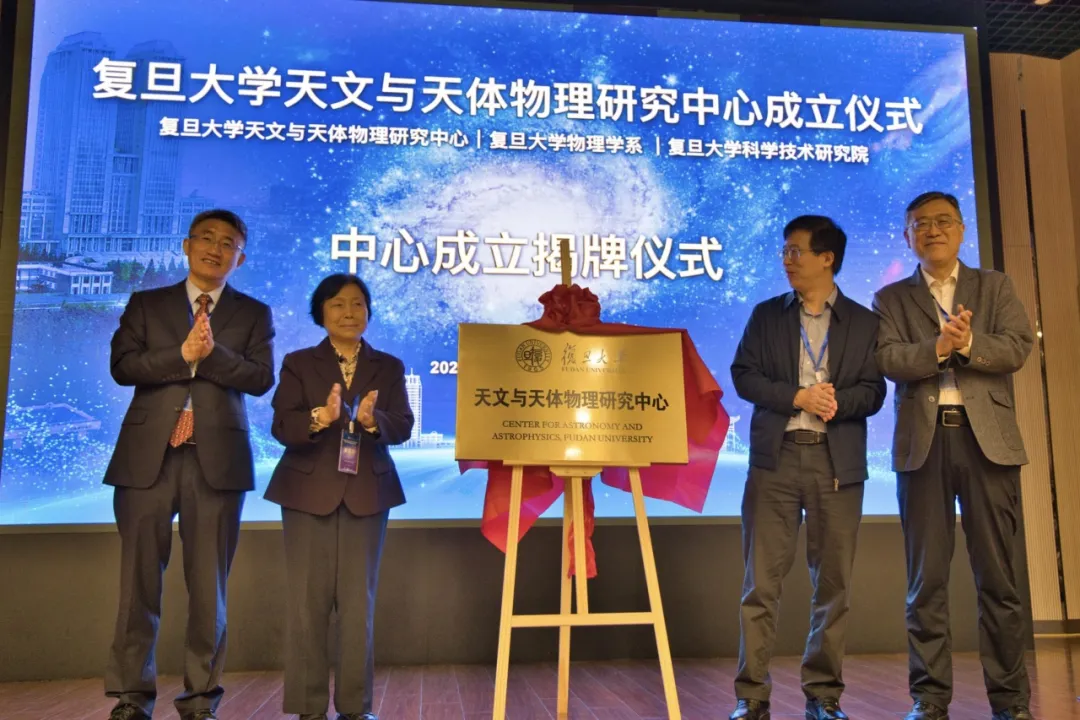 國家自然科學基金委數(shù)理科學部副主任倪培根、南京天文光學技術(shù)研究所崔向群院士、復旦大學副校長周磊教授、復旦大學天文與天體物理研究中心主任袁峰教授共同為研究中心揭牌。復旦大學科學技術(shù)研究院院長彭慧勝院士主持開幕式。