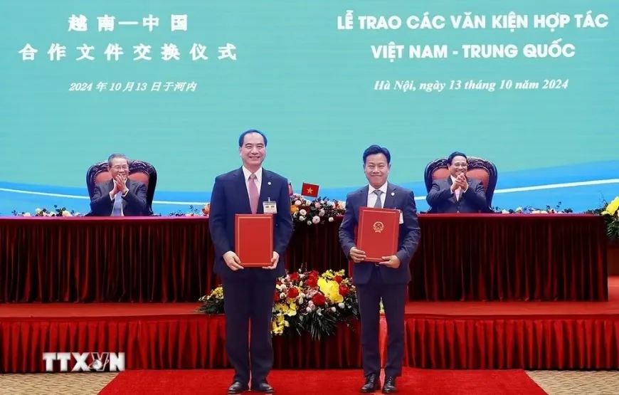 10月13日,在兩國領導人共同見證下,北京大學校長龔旗煌與越南河內(nèi)國家大學校長黎君交換《北京大學-越南河內(nèi)國家大學諒解備忘錄》。