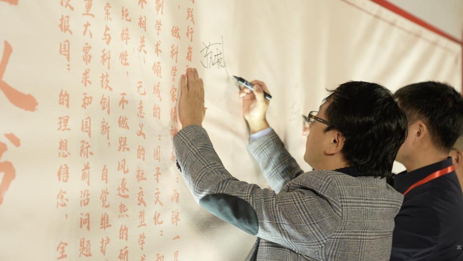 蘇杭等青年科學家代表在倡議書上簽名。戚金葆攝