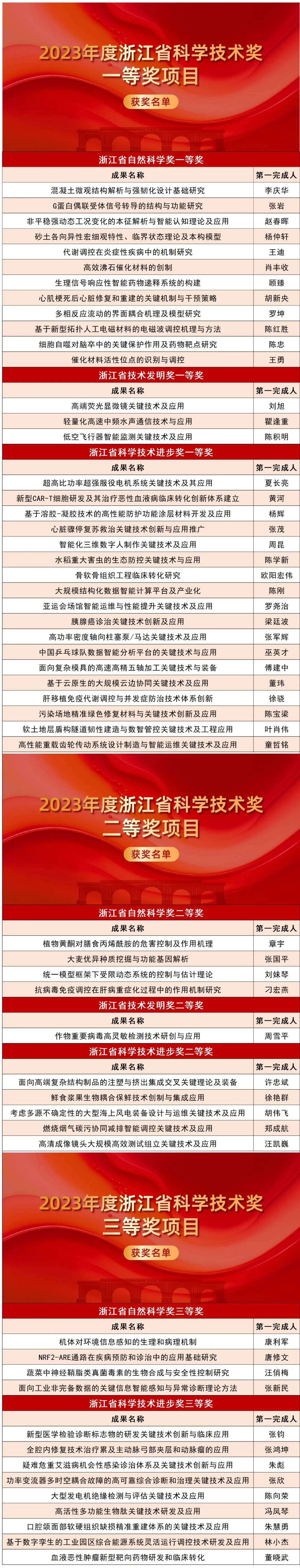 11月22日上午,加快建設(shè)創(chuàng)新浙江因地制宜發(fā)展新質(zhì)生產(chǎn)力動(dòng)員部署會(huì)暨全省科學(xué)技術(shù)獎(jiǎng)勵(lì)大會(huì)舉行,會(huì)上表彰了2023年度浙江省科學(xué)技術(shù)獎(jiǎng),浙江大學(xué)以第一完成單位獲一等獎(jiǎng)33項(xiàng),二等獎(jiǎng)10項(xiàng),三等獎(jiǎng)13項(xiàng),國(guó)際科學(xué)技術(shù)合作獎(jiǎng)4項(xiàng)。