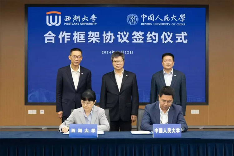 11月22日,中國人民大學(xué)與西湖大學(xué)合作框架協(xié)議簽約儀式舉行。雙方將本著“優(yōu)勢互補、資源共享、合作共贏”的原則,在未來前沿領(lǐng)域研究、人才聯(lián)合培養(yǎng)、師資隊伍建設(shè)、學(xué)術(shù)交流等方面建立長效合作機制,為服務(wù)教育強國建設(shè)和中國式現(xiàn)代化貢獻力量。