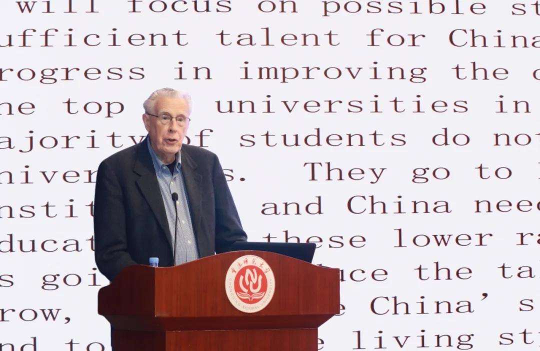 約翰·霍普克羅夫特教授以《為什么要提升大學教育質(zhì)量》為題作主旨報告,深入闡釋了提升大學教育對拔尖創(chuàng)新人才培養(yǎng)的重要性。他談到,“101計劃”是拔尖創(chuàng)新人才培養(yǎng)的一項筑基性工程,由教育部統(tǒng)籌,匯聚頂尖高校、頂尖師資、頂尖出版單位等各方資源,以課程、教材、教師和實踐項目等基礎(chǔ)要素建設(shè),來帶動教育教學系統(tǒng)改革。