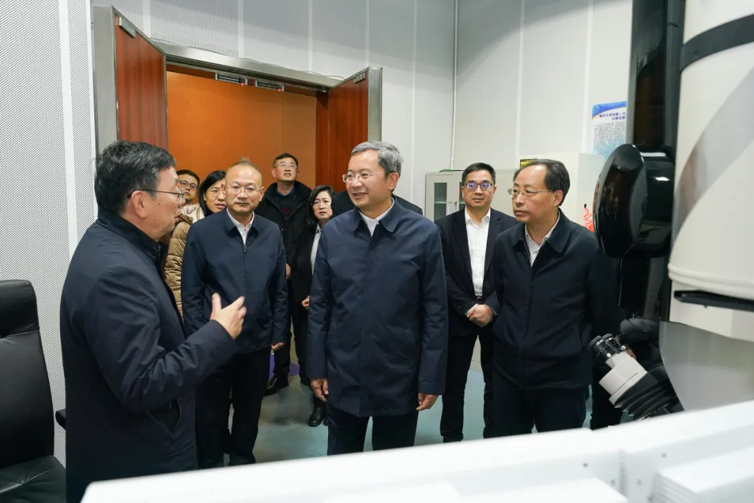 熊四皓一行實地察看了學校電子顯微鏡中心和學生交叉創(chuàng)新中心,調(diào)研學??茖W研究及卓越工程師培養(yǎng)情況。在電子顯微鏡中心,熊四皓聽取了王樹新對學?!半p一流”建設(shè)及中心建設(shè)發(fā)展等方面工作匯報,參觀了低能電子顯微鏡、三維透射電鏡、像差校正透射電鏡等科研實驗室,詳細了解了中心的設(shè)備配置、科研成果及其在材料科學等領(lǐng)域的應(yīng)用情況。重慶大學電子顯微鏡中心擁有多臺國際先進的電子顯微鏡設(shè)備,相關(guān)成果多次在《科學》(Science)、《自然》(Nature)等國際頂刊發(fā)表。