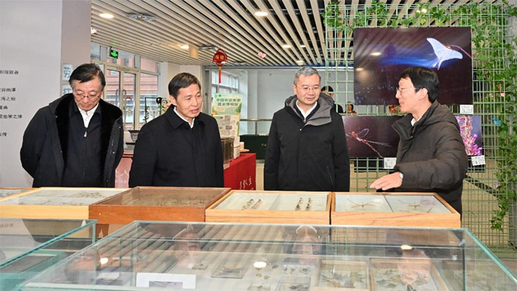 熊四皓一行首先前往檔案與校史館,了解中國農(nóng)業(yè)大學(xué)辦學(xué)歷史情況。在新植保樓聽取學(xué)??萍甲粤⒆詮?qiáng)、服務(wù)鄉(xiāng)村振興、科技小院建設(shè)等情況匯報(bào)。在生命科學(xué)研究中心調(diào)研植物抗逆高效全國重點(diǎn)實(shí)驗(yàn)室,并聽取實(shí)驗(yàn)室工作匯報(bào)。隨后前往昆蟲博物館、北京市動(dòng)物醫(yī)學(xué)教學(xué)中心和動(dòng)物醫(yī)學(xué)標(biāo)本館、飼料博物館,調(diào)研植物保護(hù)、獸醫(yī)學(xué)、畜牧學(xué)等學(xué)科建設(shè)等情況。
