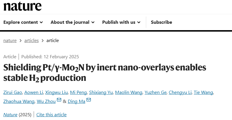 研究團隊在《Nature》雜志發(fā)表的研究成果題為“ShieldingPt/γ-Mo2N by Inert Nano-overlays Enables Stable H2 Production”,聚焦催化劑穩(wěn)定性,延續(xù)了馬丁教授此前在甲醇和水重整制氫方面的研究,創(chuàng)新性地引入稀土元素對催化劑進行改造,開發(fā)出了一種全新且泛用的高活性產(chǎn)氫催化劑穩(wěn)定策略。研究發(fā)現(xiàn),當稀土元素存在于催化劑表面并保護住催化劑的“非界面活性位”時,催化劑的壽命得到了大幅提升。具體而言,催化劑中每個Pt原子可以產(chǎn)生1500萬個氫分子,這一“轉換數(shù)”整整超過了此前報道的最高記錄一個數(shù)量級。這一歷史性突破為高效、穩(wěn)定的制氫技術提供了全新思路。