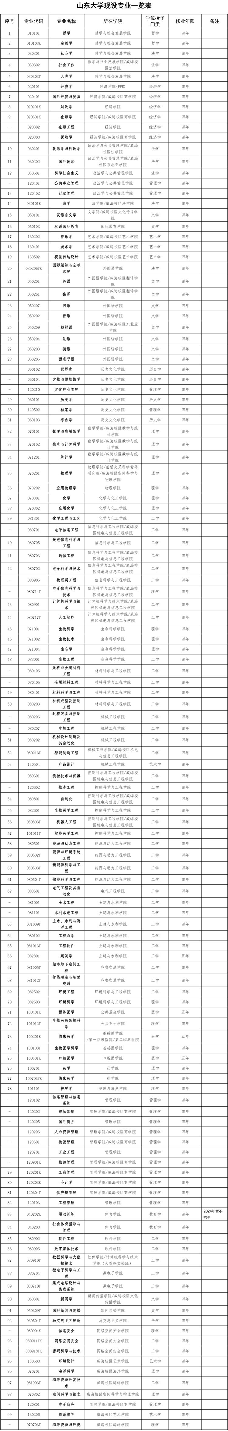2月16日,山東大學(xué)發(fā)布2023年9月至2024年8月本科專業(yè)設(shè)置及調(diào)整情況,學(xué)?,F(xiàn)有本科專業(yè)126個(gè),當(dāng)前在招專業(yè)99個(gè)。金融工程、世界史、土木工程等27個(gè)專業(yè)暫停招生(序號標(biāo)為“-”的為停招專業(yè)),撤銷書法學(xué)、高分子材料與工程、包裝工程、材料物理、材料化學(xué)、工業(yè)設(shè)計(jì)、交通運(yùn)輸、資源循環(huán)科學(xué)與工程、制藥工程、電子商務(wù)(工學(xué)),新增工程軟件、運(yùn)動(dòng)訓(xùn)練2個(gè)新專業(yè)。統(tǒng)計(jì)時(shí)點(diǎn)為2023-2024學(xué)年(即2023年9月1日至2024年8月31日)。