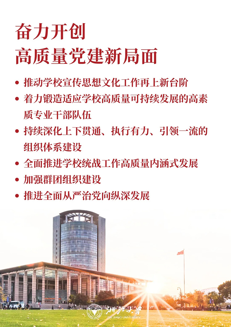 今年學(xué)校將以習(xí)近平新時代中國特色社會主義思想為指導(dǎo),深入學(xué)習(xí)貫徹黨的二十大和二十屆二中、三中全會精神,學(xué)習(xí)貫徹全國教育大會精神、全國科技大會精神和習(xí)近平總書記對浙大的重要指示精神,全面加強黨建和思想政治工作,堅持使命引領(lǐng)的戰(zhàn)略型發(fā)展,推進戰(zhàn)略謀劃、組織與實施,深化教育科技人才體制機制一體改革,高水平推進“雙一流”建設(shè),團結(jié)奮斗、勇攀高峰,推動學(xué)校改革發(fā)展事業(yè)邁上新臺階,為以中國式現(xiàn)代化全面推進中華民族偉大復(fù)興作出更大貢獻。