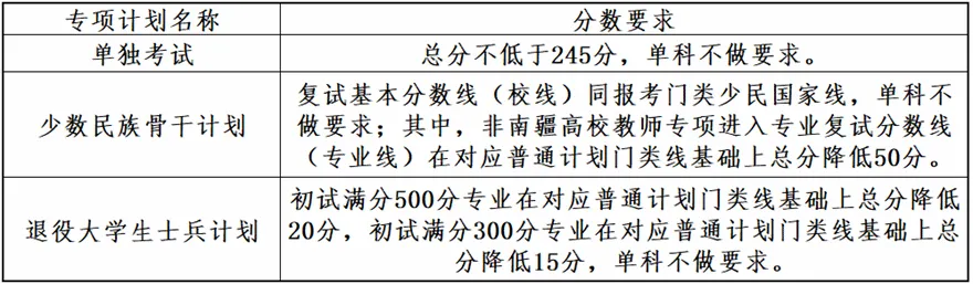 1.各招生學(xué)院(部)可根據(jù)學(xué)科特點、招生計劃數(shù)量等確定本單位各學(xué)科專業(yè)考生進入復(fù)試的初試成績要求(專業(yè)分數(shù)線)。