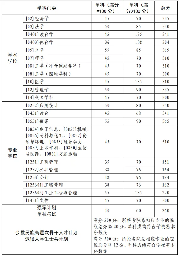 現(xiàn)將我校2025年碩士研究生入學(xué)考試復(fù)試基本分?jǐn)?shù)線發(fā)布如下: