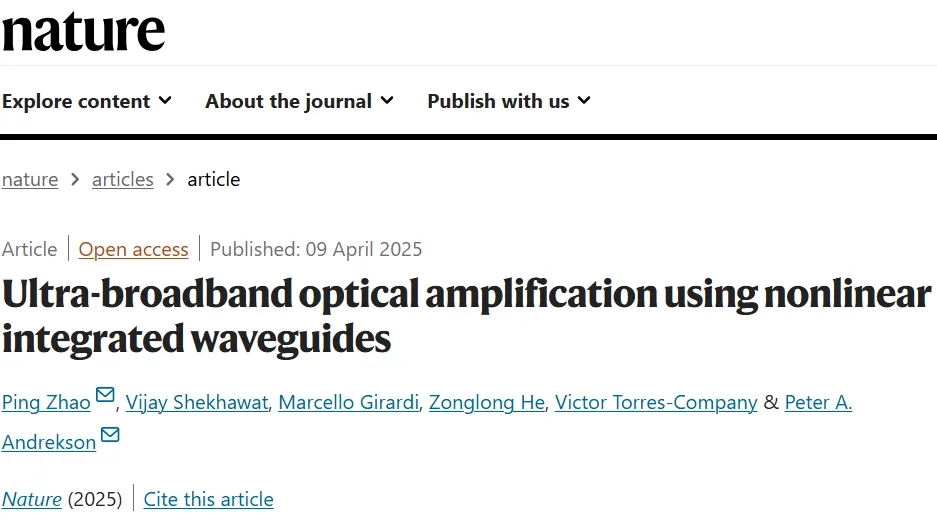 近日,四川大學電子信息學院趙平團隊聯(lián)合瑞典查爾姆斯理工大學Peter Andrekson教授團隊,在光放大器制備領域取得重要進展。相關研究以Ultra-broadband optical amplification using nonlinear integrated waveguides為題發(fā)表于Nature。四川大學趙平研究員為論文第一作者。