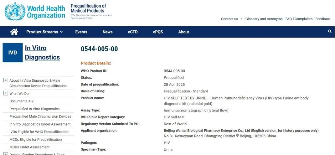圖1 HIV尿液自檢試劑獲得WHO PQ認(rèn)證