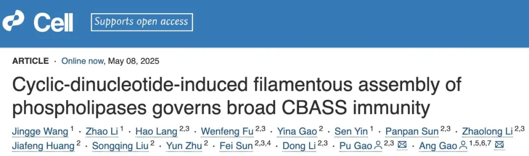 文章題為Cyclic dinucleotide-induced filamentous assembly of phospholipases governs broad CBASS immunity,揭示了CBASS系統(tǒng)磷脂酶類效應(yīng)蛋白在響應(yīng)環(huán)狀寡核苷酸分子后,自組裝形成超分子纖維結(jié)構(gòu),進(jìn)而降解細(xì)菌內(nèi)膜完成細(xì)胞殺傷的分子機(jī)制。這一發(fā)現(xiàn)不僅拓展了細(xì)菌免疫應(yīng)答的多樣性,也為開發(fā)新型抗病毒策略和可控細(xì)胞裂解工具提供了理論依據(jù)。
