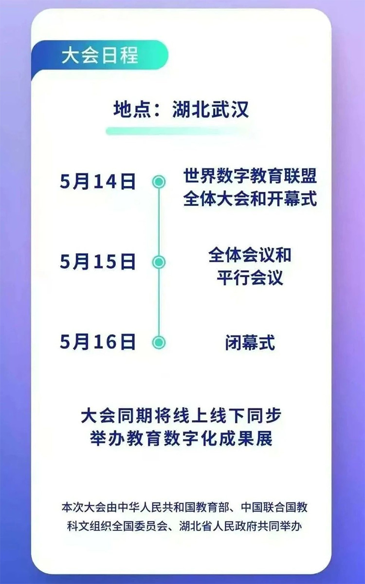 2025世界數字教育大會由教育部、中國聯合國教科文組織全國委員會、湖北省人民政府共同舉辦,主題為教育發(fā)展與變革:智能時代Education Development and Transformation:The Era of Intelligence ,旨在回應聯合國關于全球教育變革有關倡議呼吁共同推進智能時代的教育發(fā)展與變革。