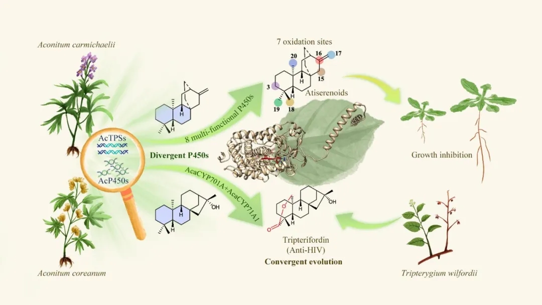 研究揭示了雷公藤福定生物合成在毛茛科黃花烏頭與衛(wèi)矛科雷公藤植物中的趨同進化以及烏頭屬二萜的化感作用及其作為植物生長調(diào)節(jié)劑的開發(fā)應(yīng)用潛力,為烏頭屬植物復(fù)雜結(jié)構(gòu)二萜生物堿的下游生物合成通路解析奠定了基礎(chǔ)。