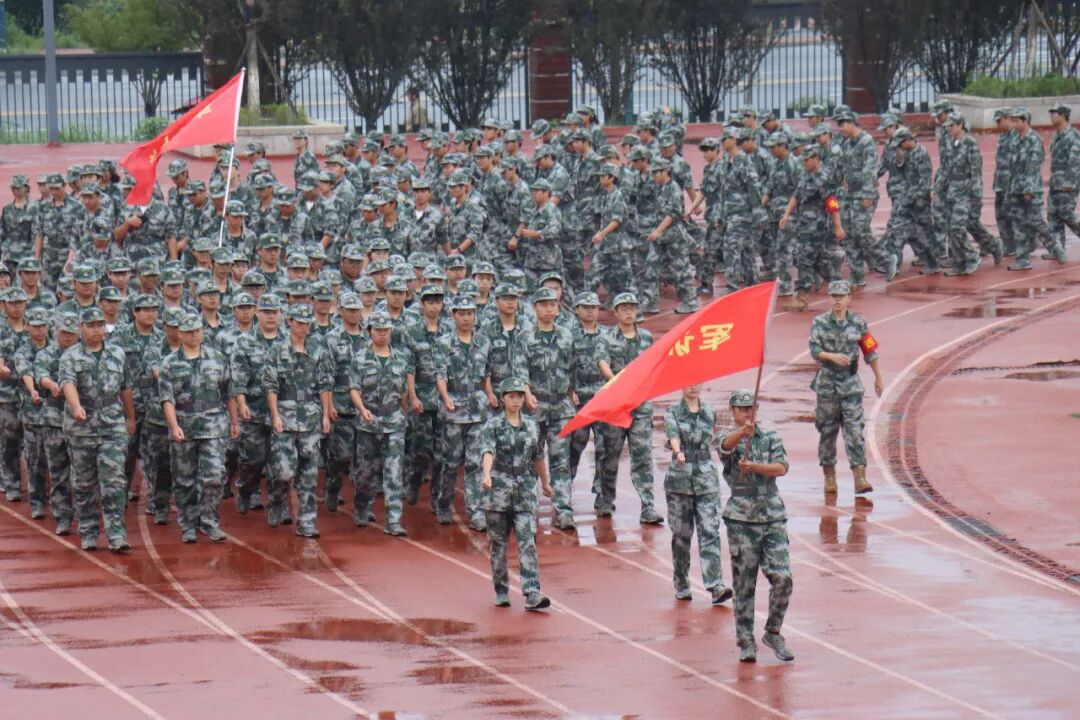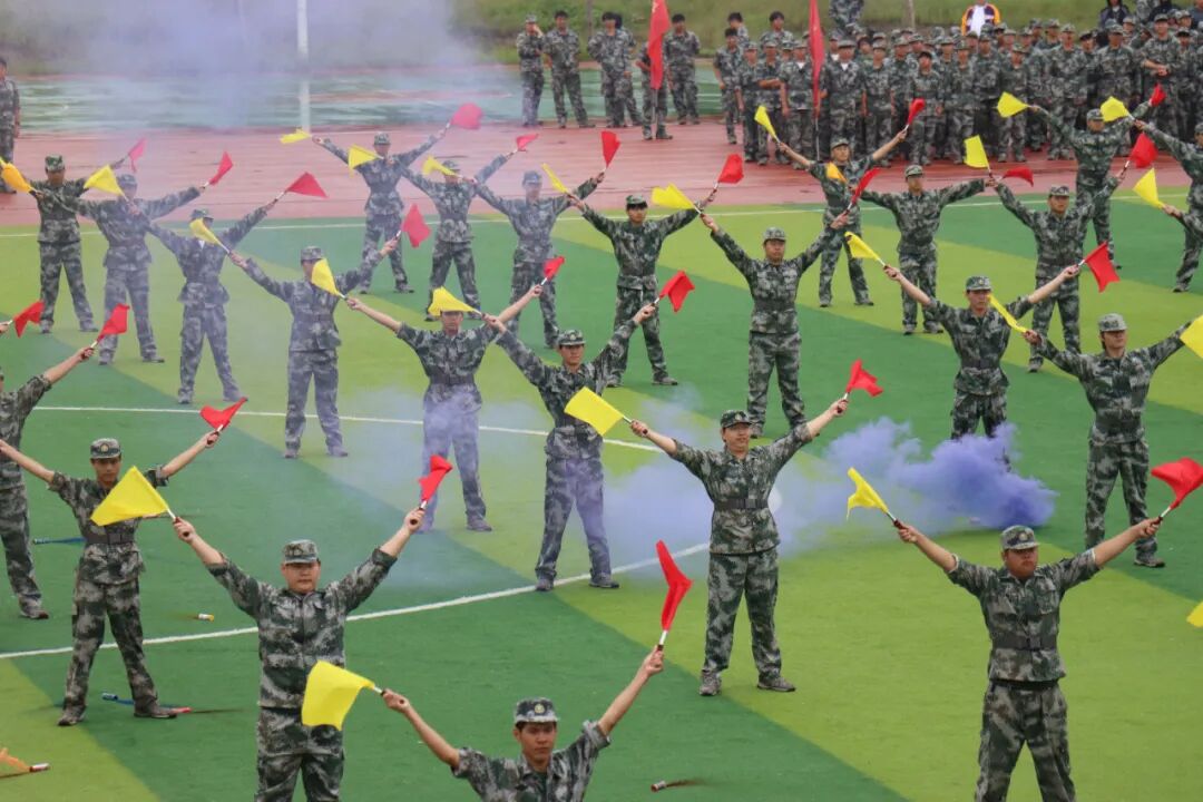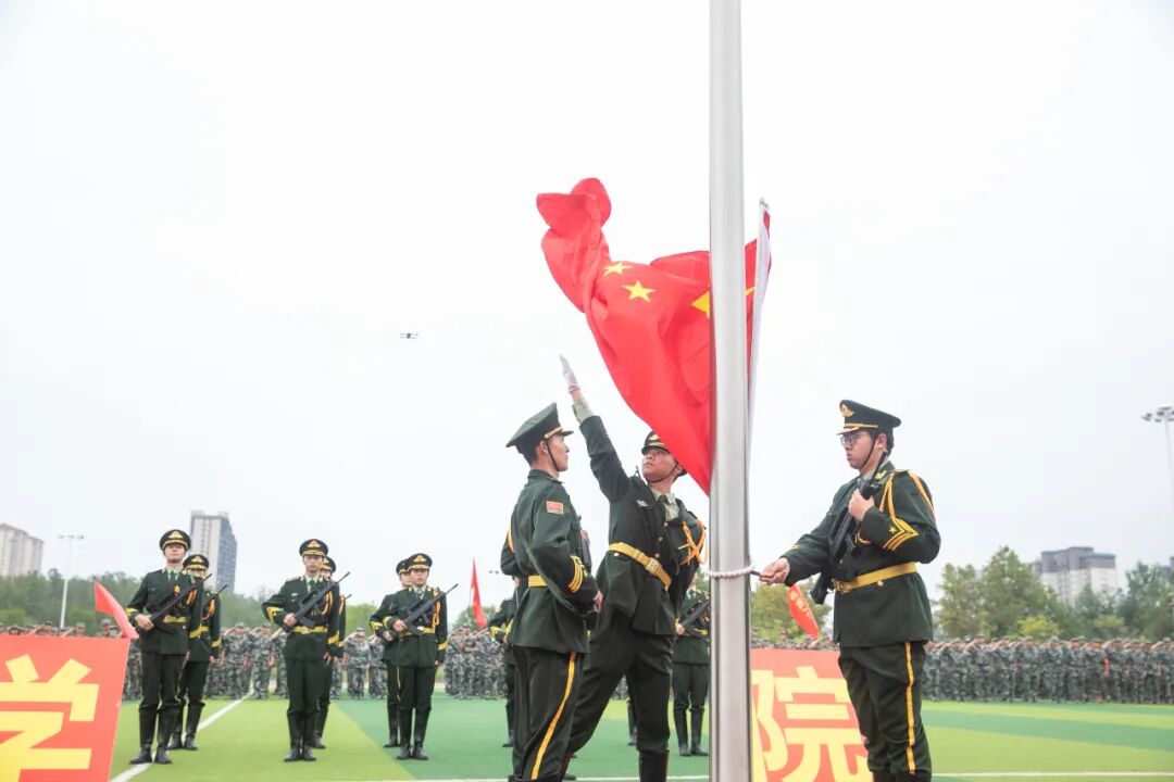 國(guó)歌奏響的瞬間,全場(chǎng)肅立,嘹亮歌聲沖破云層。身著迷彩服的新生們身姿挺拔,目光如炬,稚嫩臉龐上寫滿堅(jiān)毅,與天空下獵獵作響的國(guó)旗共同勾勒出一幅熱血畫卷。