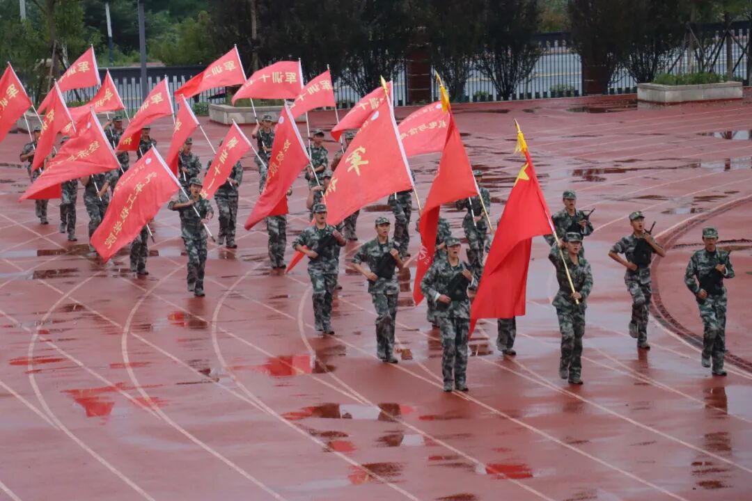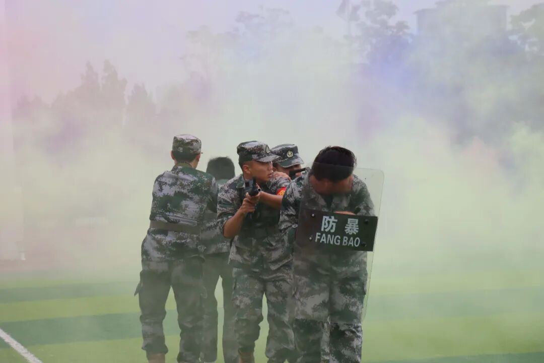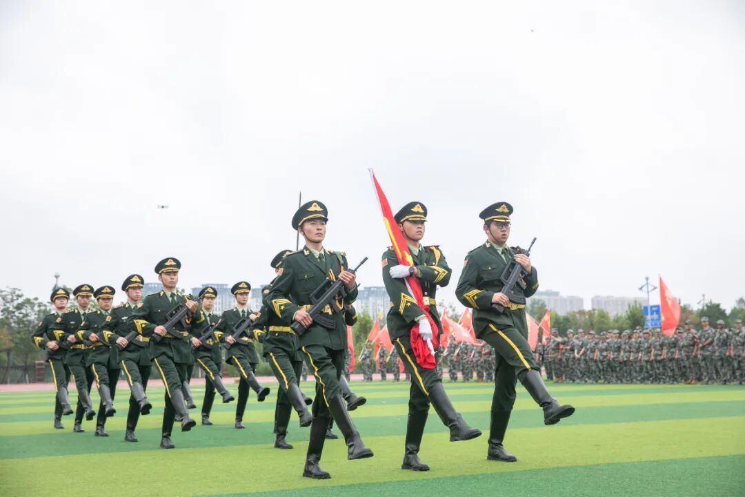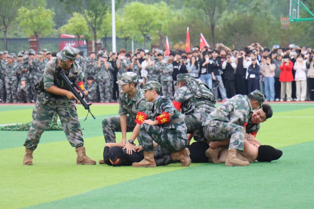 隨著分列式進(jìn)行曲響起,軍訓(xùn)成果匯報(bào)展演震撼開場(chǎng)。綠茵場(chǎng)上,各方陣邁著鏗鏘步伐依次通過主席臺(tái)。拳術(shù)方陣虎虎生風(fēng),出拳帶起破空之聲,“殺”聲震天,盡顯少年英氣;匕首方陣寒光閃爍,利落的劈刺動(dòng)作一氣呵成,巾幗須眉皆展颯爽英姿;旗語方陣紅白旗幟翻飛如浪,成員們默契配合,將無聲指令化作整齊劃一的視覺盛宴;防恐防爆方陣模擬突發(fā)場(chǎng)景,戰(zhàn)術(shù)隊(duì)形變換行云流水,盾牌與警棍碰撞聲中,應(yīng)急處突能力展露無遺。精彩的展演贏得現(xiàn)場(chǎng)掌聲如潮,這是新生們用20天汗水凝結(jié)的亮眼答卷。