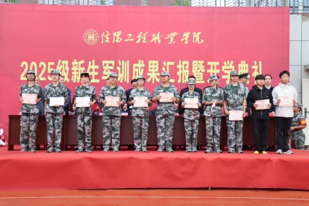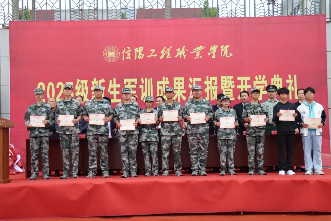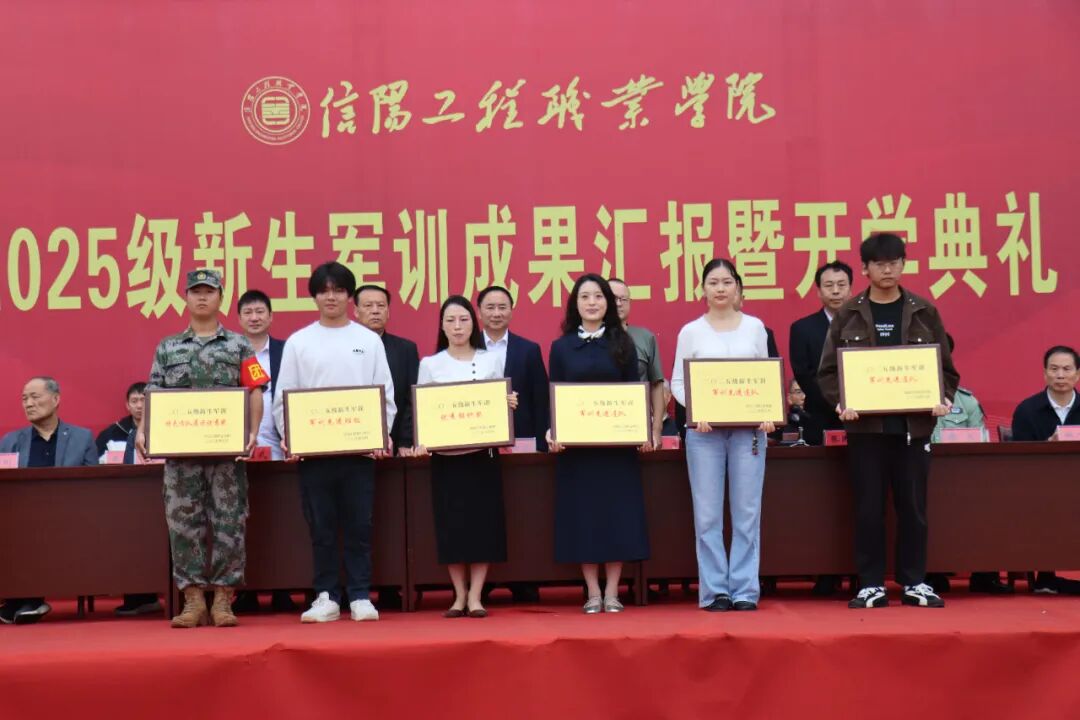 榮譽(yù)時(shí)刻隨后而至。副校長(zhǎng)張民生宣讀《關(guān)于表彰2025 級(jí)新生軍訓(xùn)先進(jìn)單位和個(gè)人的決定》,表彰名單涵蓋“訓(xùn)練先進(jìn)連隊(duì)”“特色方隊(duì)展示優(yōu)秀獎(jiǎng)” 等多個(gè)獎(jiǎng)項(xiàng)。在激昂的頒獎(jiǎng)樂中,校領(lǐng)導(dǎo)為獲獎(jiǎng)集體和個(gè)人代表頒發(fā)榮譽(yù)證書與獎(jiǎng)牌。當(dāng)“訓(xùn)練標(biāo)兵”新能源1班李某同學(xué)接過獎(jiǎng)狀時(shí),他身旁的同學(xué)紛紛投來羨慕與敬佩的目光,榜樣的力量在這一刻悄然傳遞。