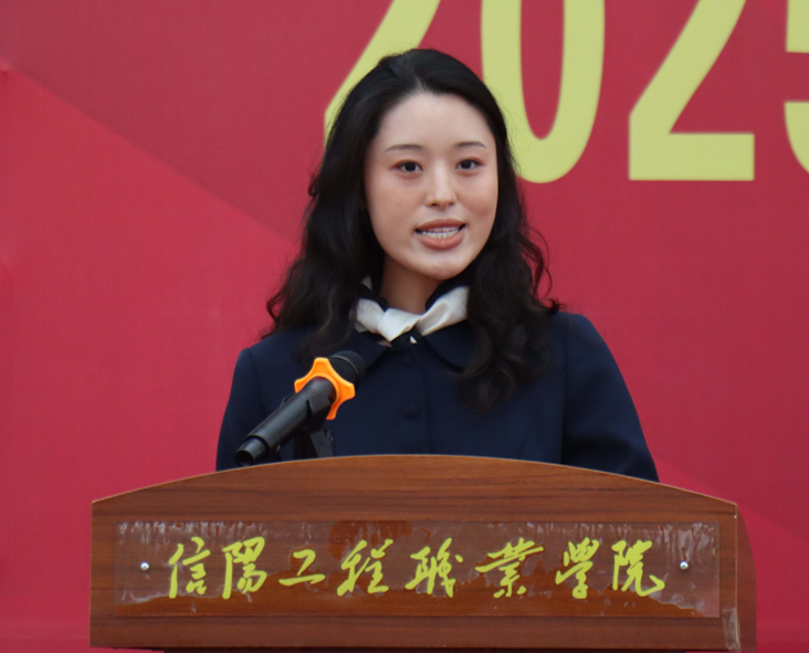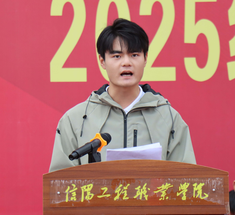 在代表發(fā)言環(huán)節(jié),不同身份的講述者帶來多元視角。汽車工程學(xué)院2025級(jí)新能源1班朱林作為新生代表,分享軍訓(xùn)中從“站不穩(wěn)軍姿”到“帶隊(duì)訓(xùn)練”的蛻變,眼中閃爍著對(duì)未來的憧憬;2025年國(guó)家獎(jiǎng)學(xué)金候選人、機(jī)電與信息工程學(xué)院 2024級(jí)工業(yè)機(jī)器人8班郭思佳以“過來人”身份,結(jié)合競(jìng)選學(xué)生會(huì)主席、斬獲省級(jí)技能競(jìng)賽一等獎(jiǎng)的經(jīng)歷,向?qū)W弟學(xué)妹們傾囊相授成長(zhǎng)秘訣;經(jīng)濟(jì)與藝術(shù)學(xué)院輔導(dǎo)員閆宇航深情承諾:我們?cè)缸稣樟聊銈兦靶械缆返臒羲?,與你們共赴星辰大海。