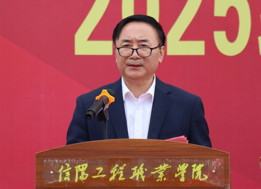 校黨委副書記、校長(zhǎng)黃功學(xué)以《以德鑄魂強(qiáng)根基,以技賦能贏未來》為題發(fā)表主旨講話。他首先向完成軍訓(xùn)淬煉的新生們送上熱烈祝賀,向烈日下堅(jiān)守的教官、默默付出的輔導(dǎo)員致以誠(chéng)摯謝意。談及學(xué)校發(fā)展,黃功學(xué)如數(shù)家珍:565畝現(xiàn)代化校園內(nèi),智慧教室、實(shí)習(xí)實(shí)訓(xùn)基地一應(yīng)俱全;圖書館藏書30萬余冊(cè),實(shí)訓(xùn)設(shè)備總值超4000萬元;與中國(guó)機(jī)械工業(yè)集團(tuán)、比亞迪等行業(yè)龍頭共建了5個(gè)產(chǎn)業(yè)學(xué)院。展望未來,他描繪出四大工程藍(lán)圖:從思政鑄魂到人才強(qiáng)校,從質(zhì)量提升到特色建設(shè),每一項(xiàng)規(guī)劃都錨定著建設(shè)高水平職業(yè)院校的目標(biāo)。