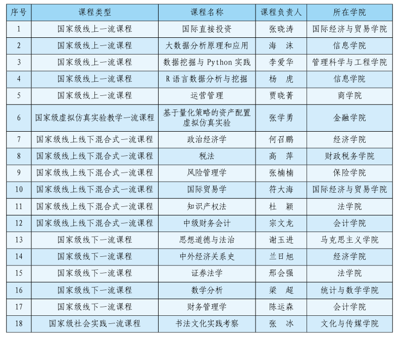 中央財(cái)經(jīng)大學(xué)第三批國(guó)家級(jí)一流本科課程入選名單