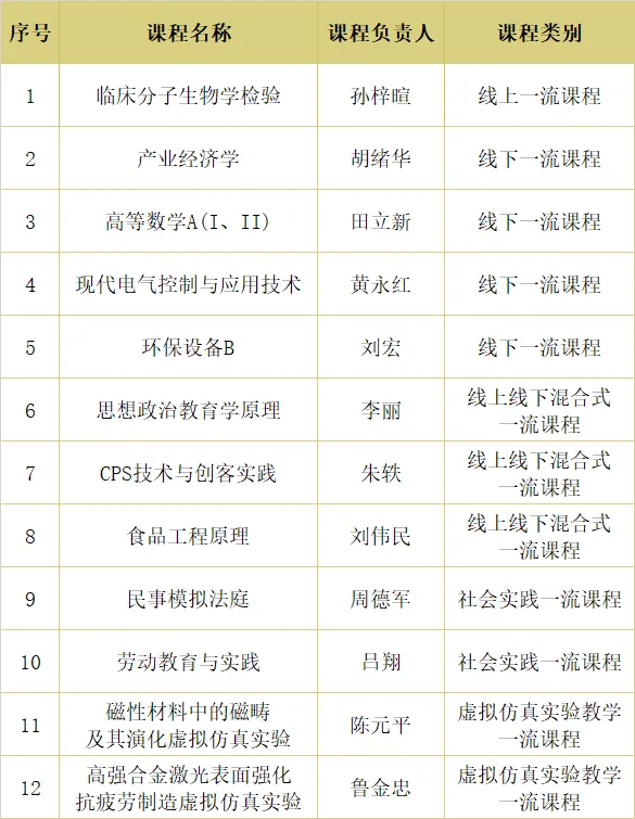 江蘇大學(xué)此次被認(rèn)定的12門國(guó)家級(jí)一流本科課程