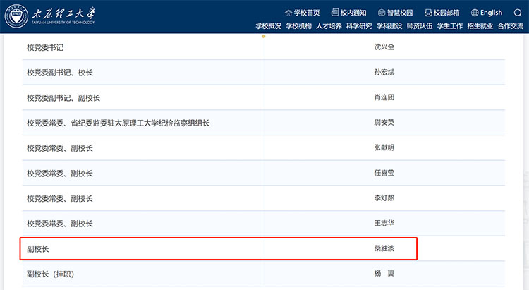 根據(jù)太原理工大學(xué)官網(wǎng)更新顯示,此前擔(dān)任學(xué)校科學(xué)技術(shù)研究院院長(zhǎng)的桑勝波教授已晉升為副校長(zhǎng)。