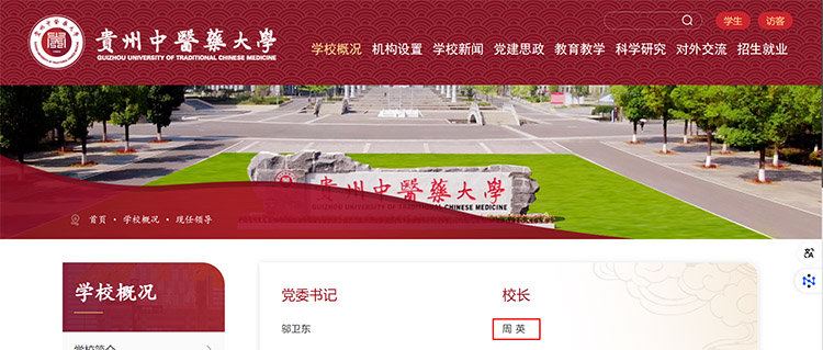 1月2日,貴州中醫(yī)藥大學(xué)“現(xiàn)任領(lǐng)導(dǎo)”一欄更新顯示,周英已任該校校長(zhǎng)。