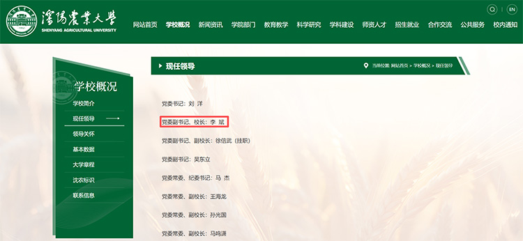 近日,沈陽農(nóng)業(yè)大學官網(wǎng)“現(xiàn)任領(lǐng)導”欄目變更顯示,李斌已任沈陽農(nóng)業(yè)大學黨委副書記、校長。公開報道顯示,沈陽農(nóng)業(yè)大學上一任校長為陳啟軍,于2018年初上任,2024年初卸任。此后,沈陽農(nóng)業(yè)大學校長職務空缺至今。