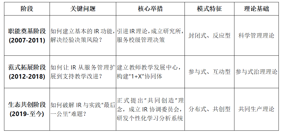 表1 文華學(xué)院“共同創(chuàng)造”IR模式發(fā)展階段表