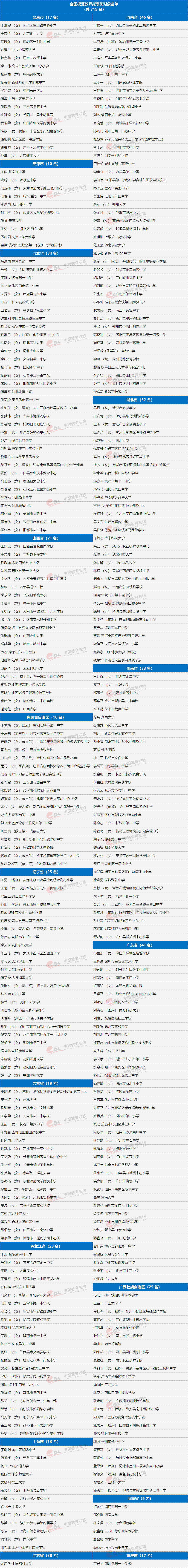 為慶祝新中國(guó)成立70周年和第35個(gè)教師節(jié),大力弘揚(yáng)尊師重教的良好風(fēng)尚,進(jìn)一步增強(qiáng)廣大教師和教育工作者的榮譽(yù)感、責(zé)任感,促進(jìn)廣大教師和教育工作者為推進(jìn)教育現(xiàn)代化、建設(shè)教育強(qiáng)國(guó)、辦好人民滿意的教育作出更大貢獻(xiàn),根據(jù)《人力資源社會(huì)保障部 教育部關(guān)于做好2019年全國(guó)教育系統(tǒng)先進(jìn)集體和全國(guó)模范教師全國(guó)教育系統(tǒng)先進(jìn)工作者評(píng)選表彰的通知》(人社部函〔2019〕102號(hào))要求,經(jīng)全國(guó)各省、自治區(qū)、直轄市及新疆生產(chǎn)建設(shè)兵團(tuán)人力資源社會(huì)保障廳(局)、教育廳(教委、教育局)、中央軍委訓(xùn)練管理部院校局逐級(jí)推薦和評(píng)選,并經(jīng)全國(guó)教育系統(tǒng)評(píng)選表彰工作領(lǐng)導(dǎo)小組審核,擬表彰全國(guó)教育系統(tǒng)先進(jìn)集體597個(gè)、全國(guó)模范教師719名和全國(guó)教育系統(tǒng)先進(jìn)工作者79名(名單見(jiàn)附件),現(xiàn)予以公示。