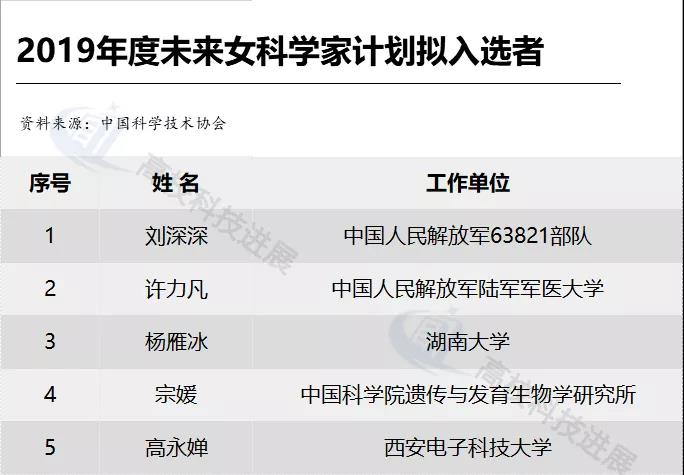 2019年度“未來(lái)女科學(xué)家計(jì)劃”擬入選者名單中,中國(guó)人民解放軍陸軍軍醫(yī)大學(xué)、湖南大學(xué)、西安電子科技大學(xué)各有1人入選,他們分別是許力凡、楊雁冰、高永嬋。
