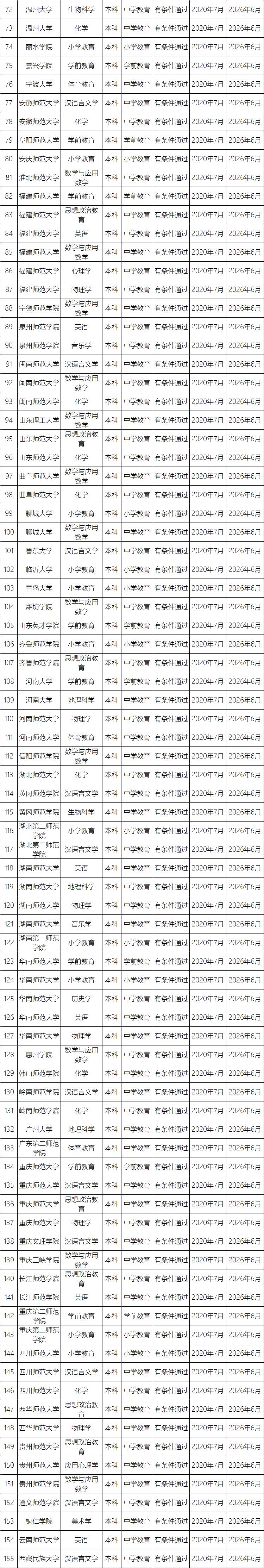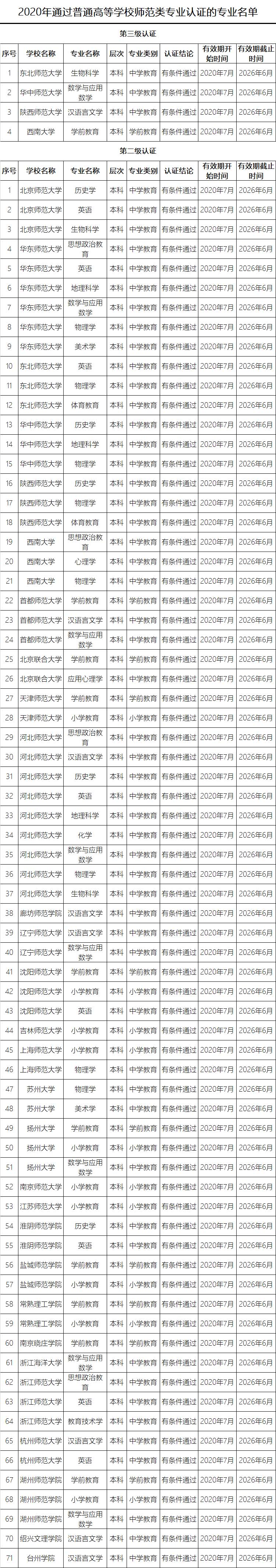 根據(jù)《中共中央 國務(wù)院關(guān)于全面深化新時代教師隊伍建設(shè)改革的意見》的決策部署,按照《教育部關(guān)于印發(fā)〈普通高等學(xué)校師范類專業(yè)認(rèn)證實施辦法(暫行)〉的通知》(教師〔2017〕13號),經(jīng)高校申請、教育評估機(jī)構(gòu)組織專家現(xiàn)場考查、普通高等學(xué)校師范類專業(yè)認(rèn)證專家委員會審定,東北師范大學(xué)生物科學(xué)專業(yè)等4個專業(yè)通過第三級專業(yè)認(rèn)證,北京師范大學(xué)歷史學(xué)專業(yè)等155個專業(yè)通過第二級專業(yè)認(rèn)證。認(rèn)證結(jié)論有效期六年,自2020年7月起至2026年6月止?,F(xiàn)將通過認(rèn)證的專業(yè)名單予以公布,并就有關(guān)事項通知如下。