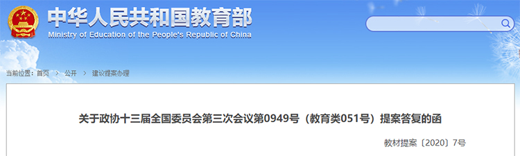 關(guān)于政協(xié)十三屆全國委員會第三次會議第0949號(教育類051號)提案答復(fù)的函