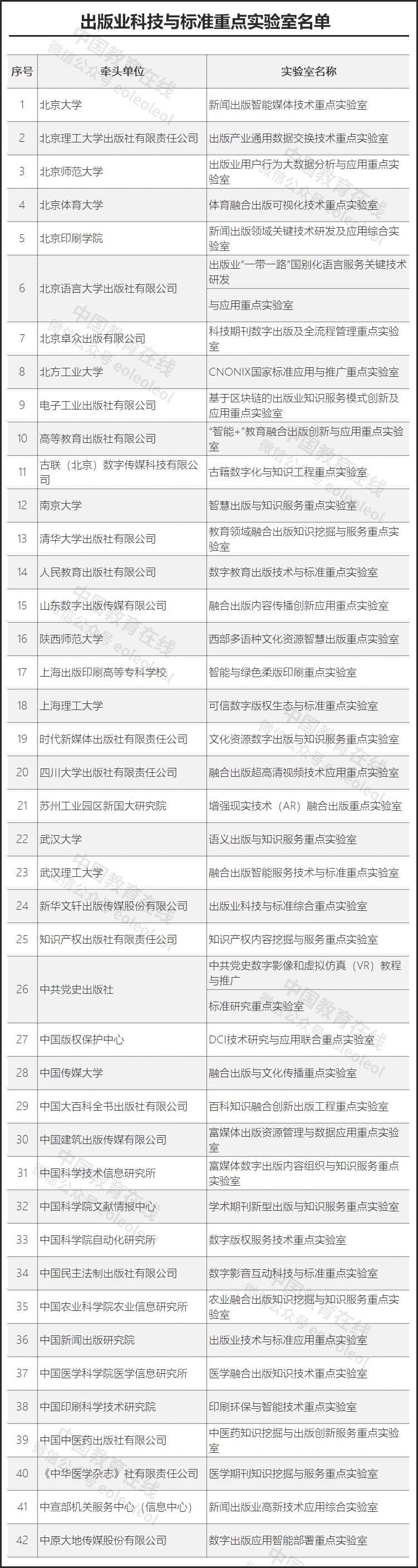 42個!國家新聞出版署發(fā)布出版業(yè)科技與標準重點實驗室名單
