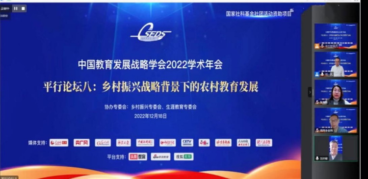 中國教育發(fā)展戰(zhàn)略學會2022年學術(shù)年會——鄉(xiāng)村振興戰(zhàn)略背景下的農(nóng)村教育發(fā)展分論壇于12月18日在線上開幕。本次會議以“學習貫徹二十大精神,深入探討鄉(xiāng)村振興背景下的農(nóng)村教育發(fā)展”為主題。聚焦多產(chǎn)業(yè)合作,打開思路,開拓新的教育模式,建立多點共建的發(fā)展戰(zhàn)略,推動鄉(xiāng)村教育的進一步深入。