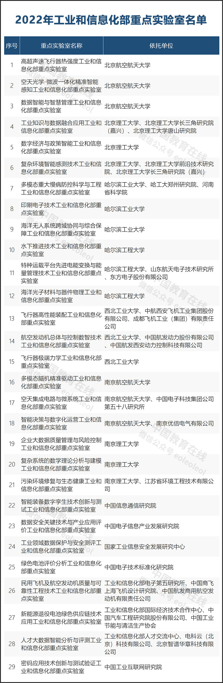 2022年工業(yè)和信息化部重點(diǎn)實(shí)驗(yàn)室名單公布