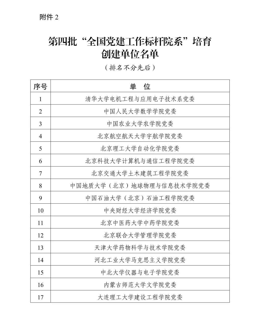 第四批“全國黨建工作標(biāo)桿院系”培育創(chuàng)建單位名單