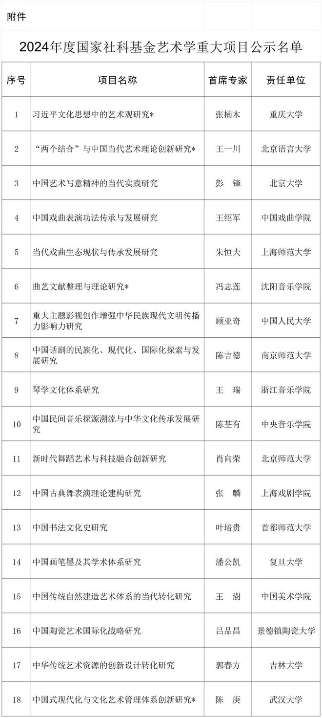 18所高校入選!2024年度國(guó)家社科基金藝術(shù)學(xué)重大項(xiàng)目名單公示