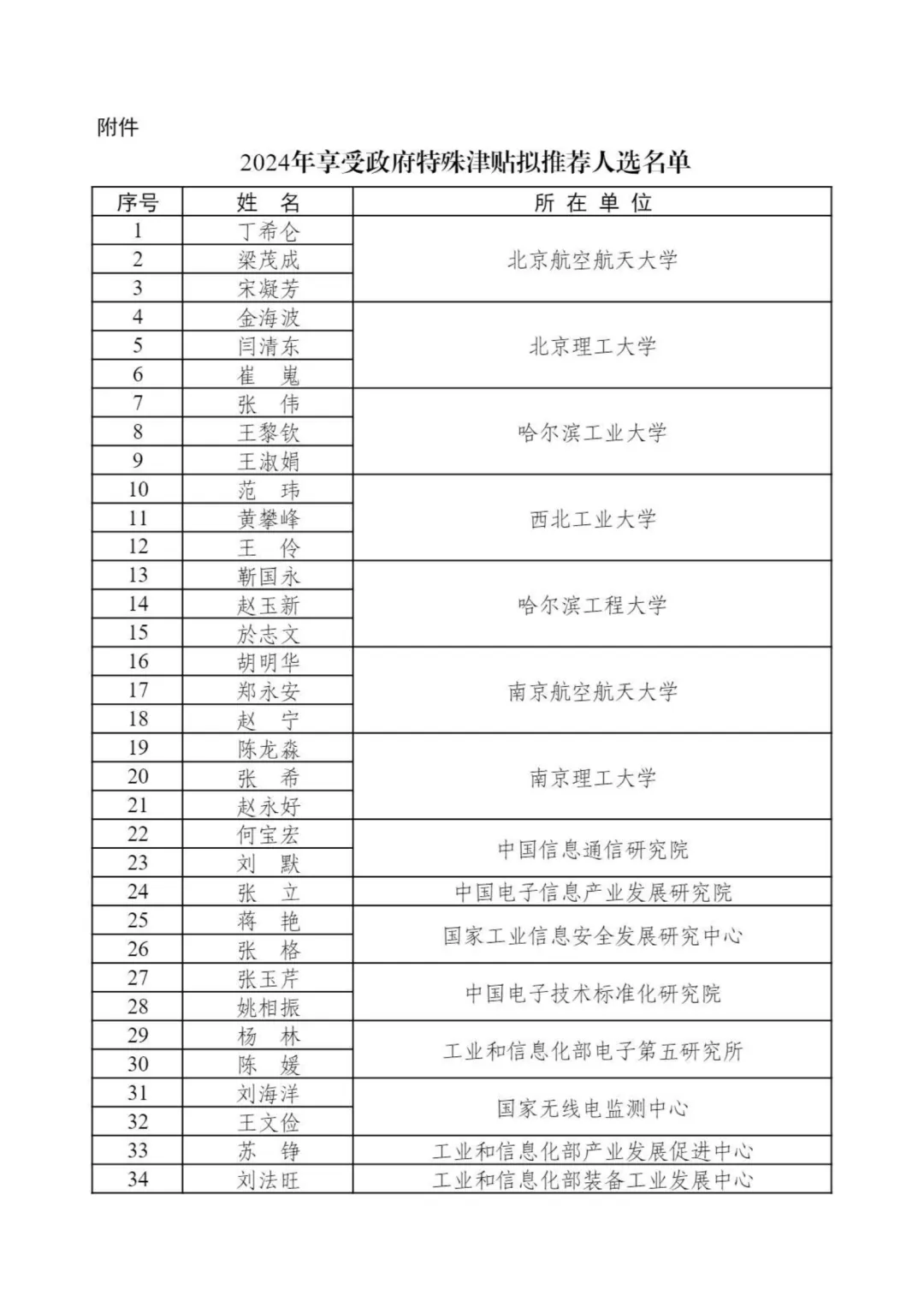 工業(yè)和信息化部2024年享受政府特殊津貼推薦人選名單
