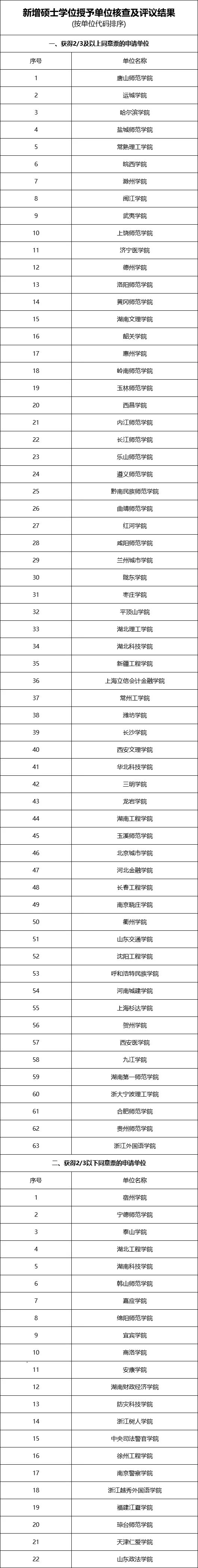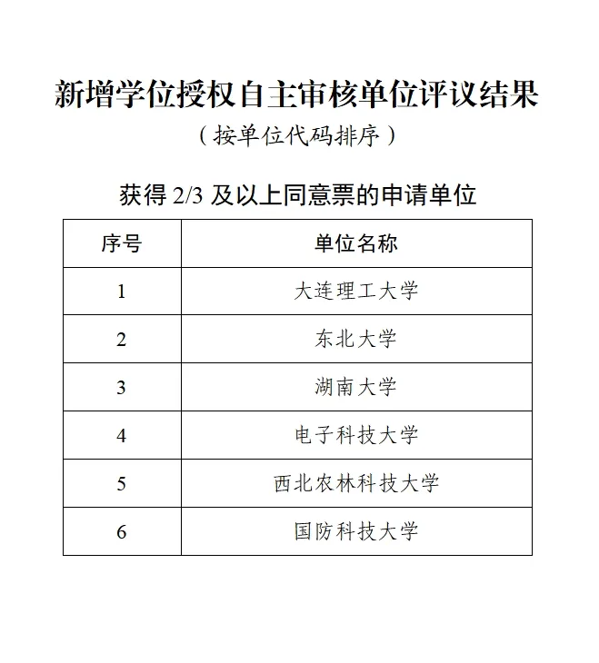 新增博士學(xué)位授予單位評議結(jié)果
