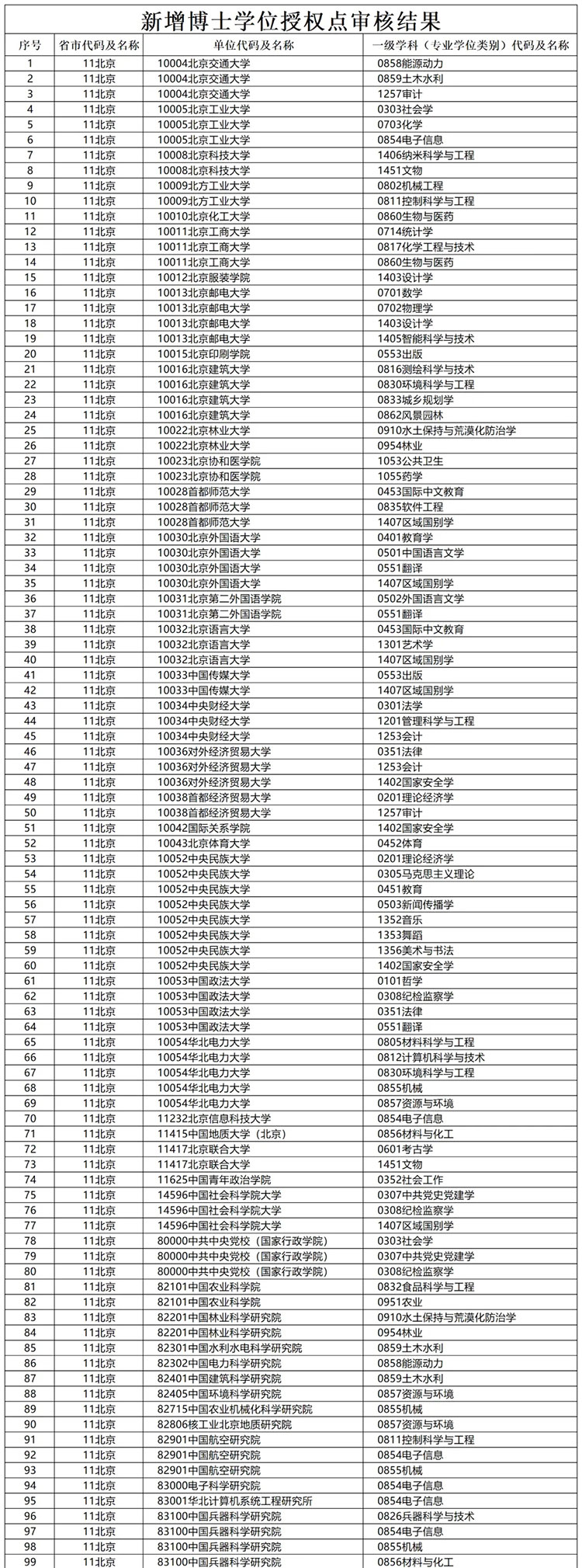 新增博士學(xué)位授權(quán)點審核結(jié)果