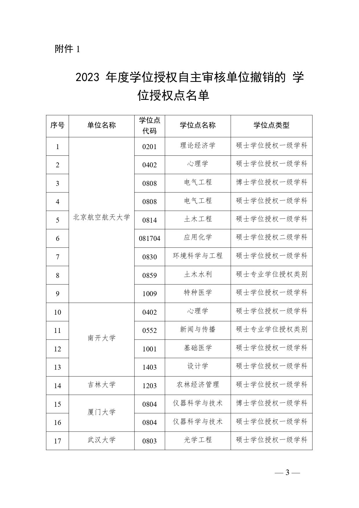 2023年度自主審核單位撤銷和增列的學位授權(quán)點名單公布